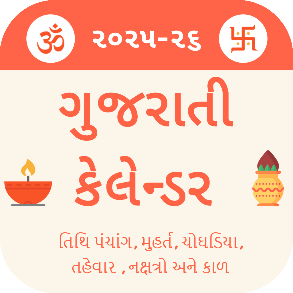 રોજની તિથિ, નક્ષત્ર, રાશિ, તહેવારો, વ્રત કથા અને તમારા સ્થળ મુજબનું ચોઘડિયું — સુંદર અને સરળ ગુજરાતી કેલેન્ડરમાં.